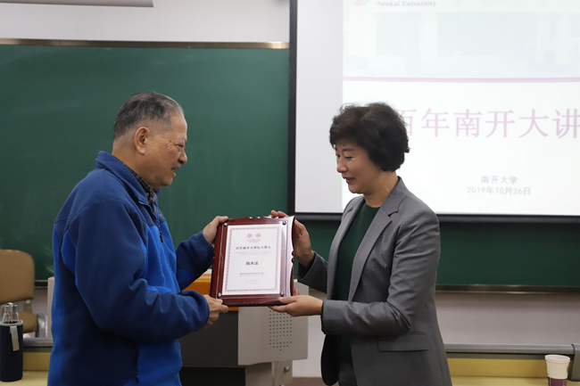 10月26日,中国科学院院士、第三世界科学院院士、美国数学学会会士陈木法教授做客百年南开大讲坛,在范孙楼作了题为“交叉研究的感悟”的学术报告。校党委副书记杨克欣为陈木法颁发“百年南开大讲坛主讲人”纪念牌。中国科学院院士张伟平等专家学者出席报告会,国产自拍 负责人主持。