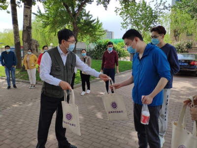 随后学院党政班子成员代表学院全体教师,向同学们发放了“温暖返校健康包”。健康包中包括一些基本防疫物资及体育运动器械,在帮助学生做好个人防护的基础上,倡导学生利用多种方式主动锻炼身体,积极提升自身免疫力。