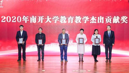 长期坚守教育教学一线并取得优秀创新成果的骨干教师是南开教育教学事业的中坚力量。我院执行院长王兆军教授(图中左一)荣获本年度国产自拍 教育教学杰出贡献奖。该奖项用于表彰获奖教师的育人初心,表彰他们在传承发扬南开光荣传统,推动学校教育教学事业不断发展中所作出的杰出贡献。