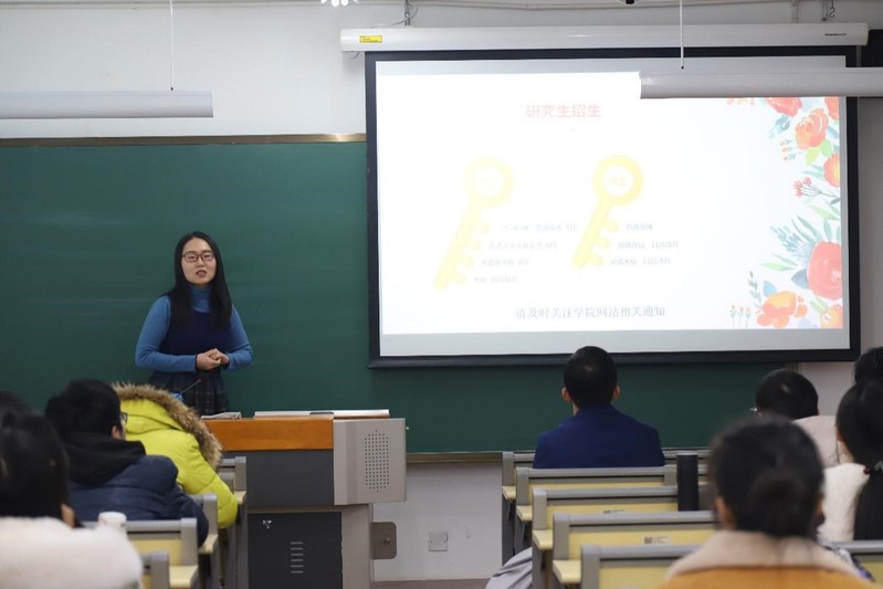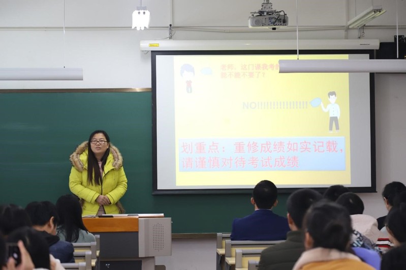 教学办公室主任周晓英对本科教学相关规章制度进行了详细的解读,强调任课教师按照学校规定处理相关教学事务,新入职教师要严格遵守听课制度。介绍了学院教学、督导和比赛小组的情况及职能,鼓励同学们积极参赛,向学生讲述本科教学选课、考试及学业警示的重要事项。临近期末考试,提醒同学们注意考试纪律。