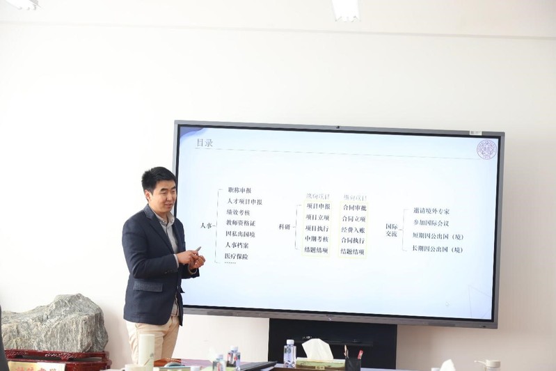 人事秘书赵斯达所负责的人事、科研和国际交流合作方面重要工作事项进行了说明。对职称申报流程及资格进行了详细的解读,对科研项目申报流程、时间结点以及项目执行注意事项进行了强调。向学生介绍了如何制作英文CV和求职PPT、因公出国(境)申请流程,并分享理工科学生英语学习方法。