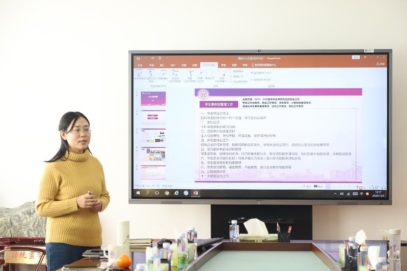 党总支书记邹玉洁做了总结发言,她代表学院对所有行政老师们为交流会做的充分准备、对所负责工作做的详细介绍表示感谢。她说管理工作是学院服务师生的重要环节,一流学科建设需要一流的行政管理。管理和服务最重要的是建章立制,要按照学校和学院的规章制度办事。学院的行政管理队伍年轻且富有朝气,要继续保持昂扬上进的工作状态,为师生提供高质量、有效率的管理和服务。学生是学校的未来、是祖国的未来,学院十分重视三全育人工作,将其摆在重要的位置上,统筹推动课程、科研、实践、文化、心理、管理、服务等多元化的育人平台建设,力争在助力学生成长成才上出真招、见实效。希望同学们有问题、有建议及时与老师们沟通,要依托学校、学院提供的丰富资源和优质的服务努力学习、提升自我,为学校为国家做贡献。