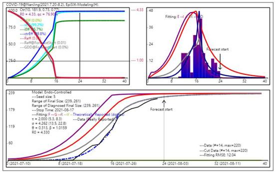 南京:EpiSIX 给出的本轮疫情预测,采用数据长度为 14(2021.7.20~8.02)