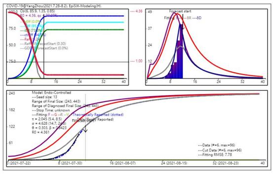 扬州:EpiSIX 给出的本轮疫情预测,采用数据长度 6 天(2021.7.28~8.02)