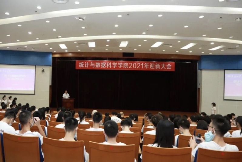 本次会议是自学院成立以来规模最大的一次迎新大会,学院迎来了2020级从理科试验班分流进入我院的118名和转专业加入我院的10名本科生、77名2021级应用统计和统计学硕博研究生,以及11名自去年9月后通过校内调动或引进招聘加入我院的新教职工。学院党总支书记邹玉洁、学院执行院长王兆军出席会议。