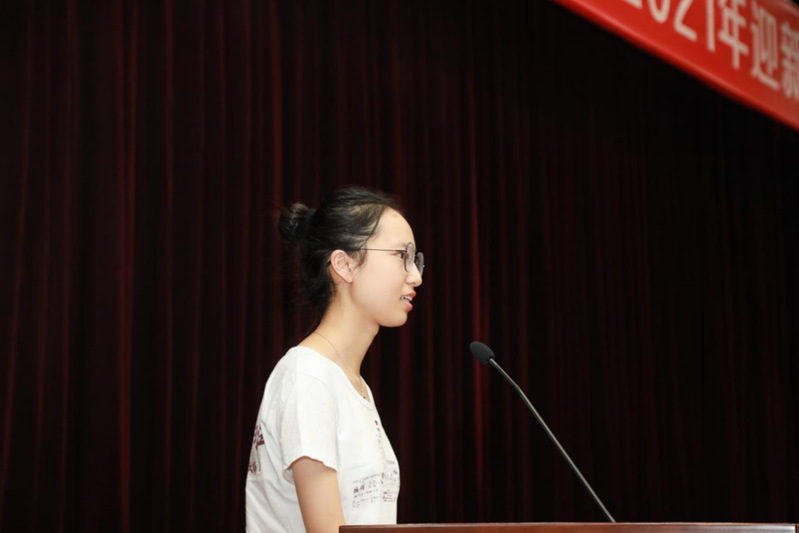 随后,2020级本科生代表张义美同学进行了发言。她说:“过去的一年中。我在方方面面体会到了学院的人文关怀。”在发言中,张义美提到,自己初入大学时,面对难度陡然提升的专业课程迷茫无措。班导师们特意为学生们解压,在学业上倾囊相授,在情绪上予以慰藉;辅导员老师也到宿舍与学生们进行谈心,为大家排忧解难;在学院朋辈帮扶活动中,热心的学长学姐们也不吝地给予建议和帮助。种种收获、种种感动,未来三年,相聚于此。