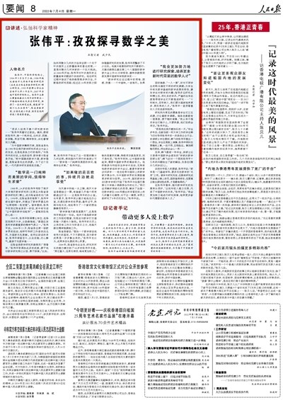 谈到对年轻人的期望,张伟平说:“数学是一门基础学科,要多关注数学的‘无用’之用。就学术研究而言,在既有研究成果基础上锦上添花,固然值得肯定,但要真正做出原创性成果,才是最难得的。”