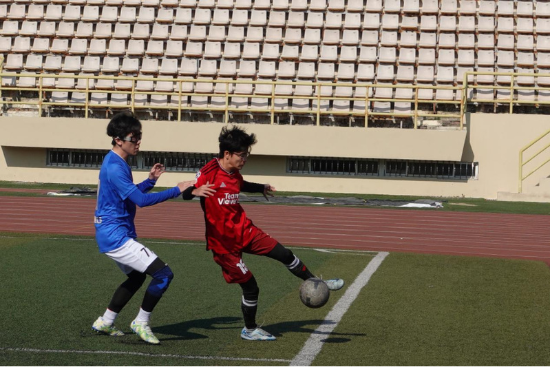 随着裁判员的一声哨响,比赛开始!我方开场后积极进攻,逐渐占据控球的主动权,而经院则采取了五后卫的防守阵型。面对对方密集的防守人员,以及坚决上身体的防守策略,我方虽有控球优势,却难以攻入腹地,无法创造绝佳机会,多次进攻均被拦截下来:孙闻泽在角球进攻中的射门稍稍高出;何睿炎的一脚远射直奔死角,但被对方门将扑出;王逸凡接传中球后的头球攻门差之毫厘。经院则主要通过高中锋的冲击来突破防线,但受制于进攻点有限,几乎没有获得射门机会。