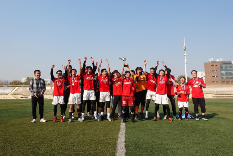 最终,全场比赛结束,统院以5:1大胜经院为本届足协杯画上句号。纵览整届比赛,从老师到队员,统院足球队始终团结一心。进球时相拥庆祝,失球时安慰鼓励,队员受伤时及时察看,遇到阻力时商讨策略。许振波从布置战术、安排训练,到激励全队士气、体察队员情绪,处处展现出属于队长的担当精神。而为统院热烈鼓掌的观众们,为队员们提供饮用水、进行摄影工作的同学们,他们同样是不可或缺的存在,是场边最棒的“第十二人”。这个冠军,属于所有支持统院足球队,为统院足球队作出奉献的老师同学们。