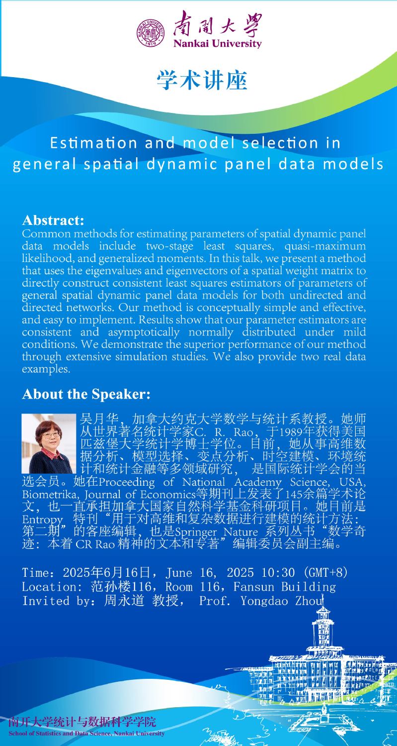 Estimation and model selection in general spatial dynamic panel data models(吴月华)